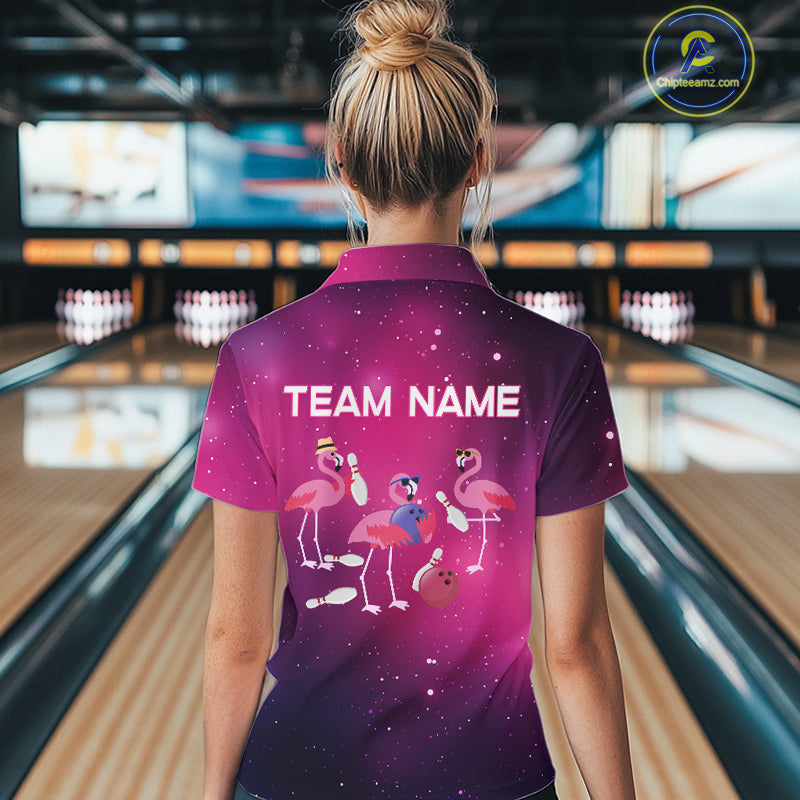Funny Flamingo Team bowling shirts for Women custom Pink Galaxy pattern bowling jerseys for bowlers NQS10883