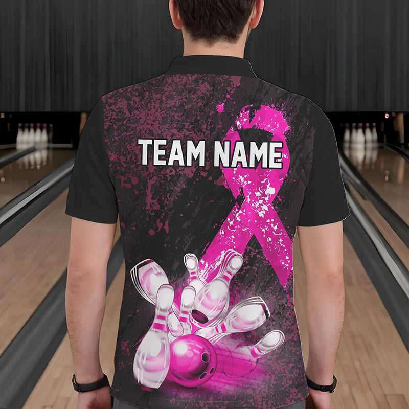 Personalized Pink Ribbons Grunge Bowling Shirts For Men, Custom breast cancer bowling Team shirts NQS9613