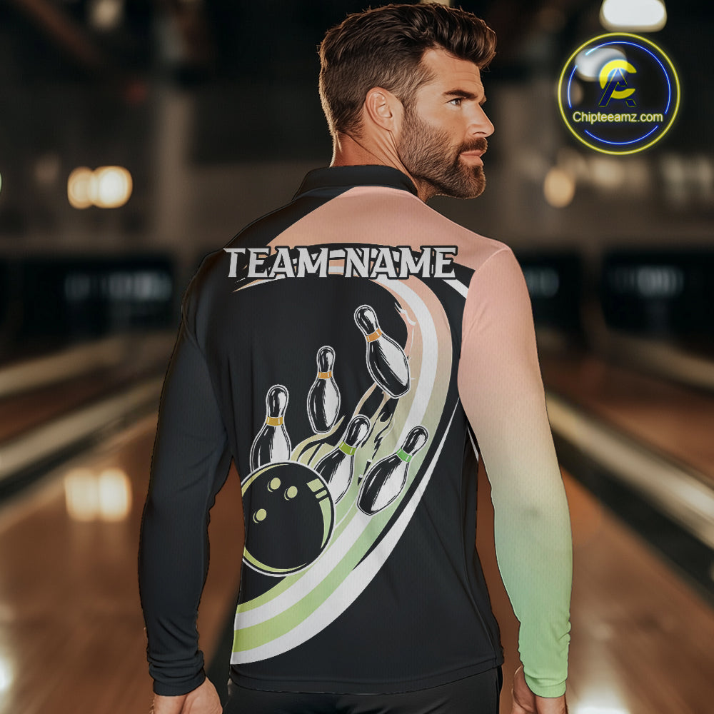 Pink and Green Gradient Bowling Shirts For Men Custom Bowling Team League Jersey, Gift For Bowler NQS10433