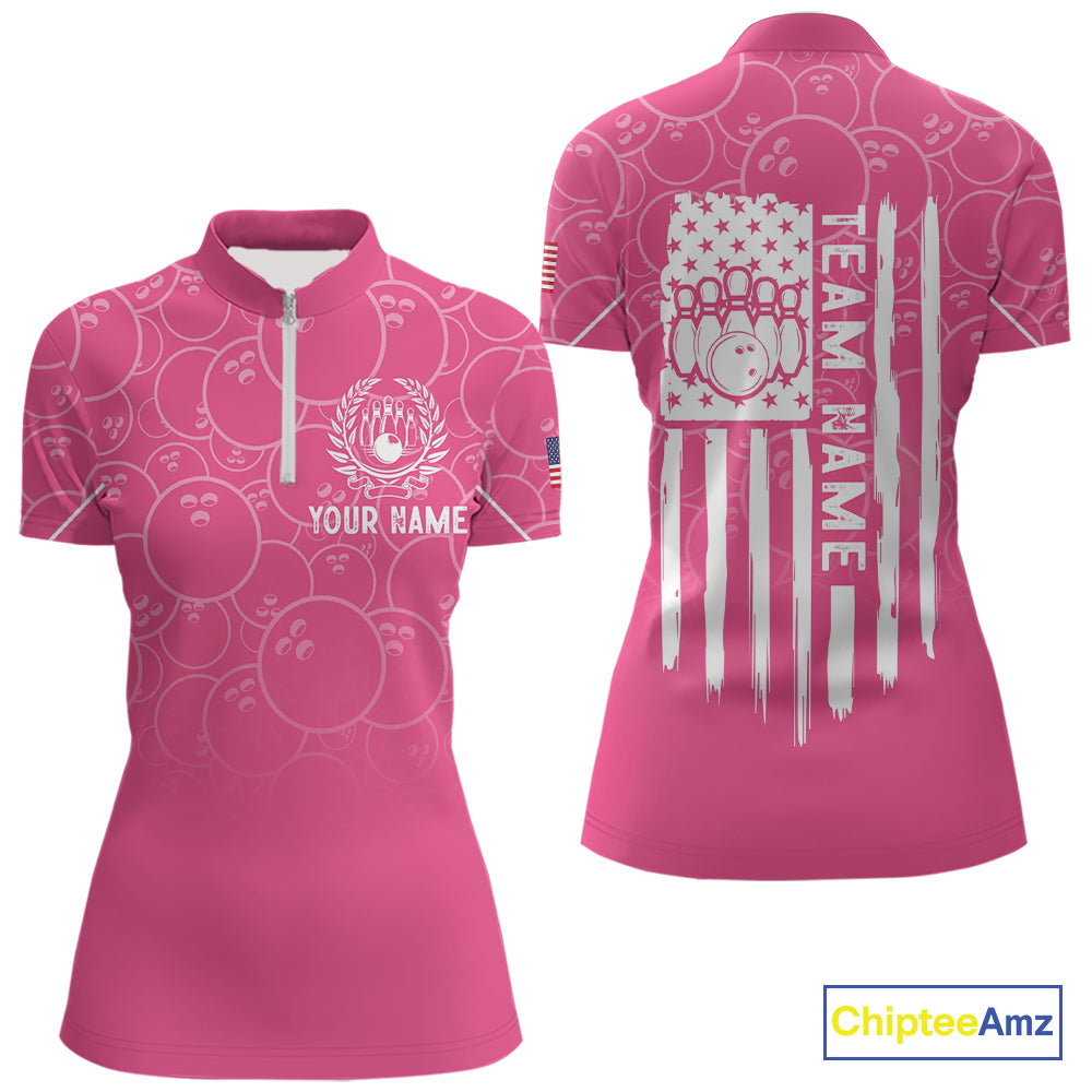 Pink bowling camo Womens bowling shirts Custom American flag patriotic bowling team league jerseys NQS10714