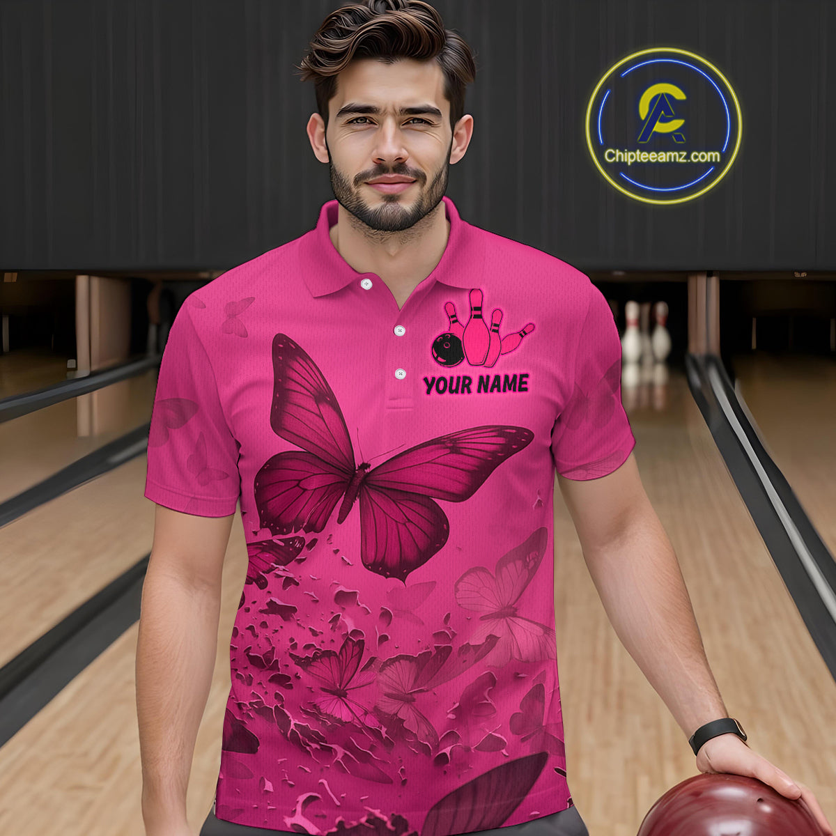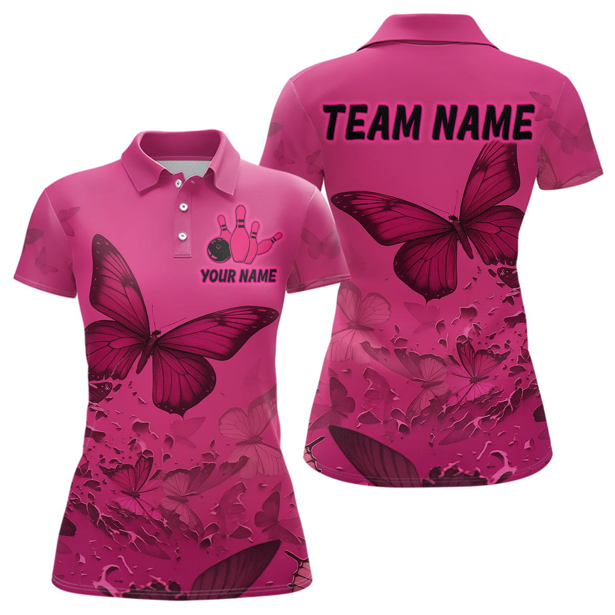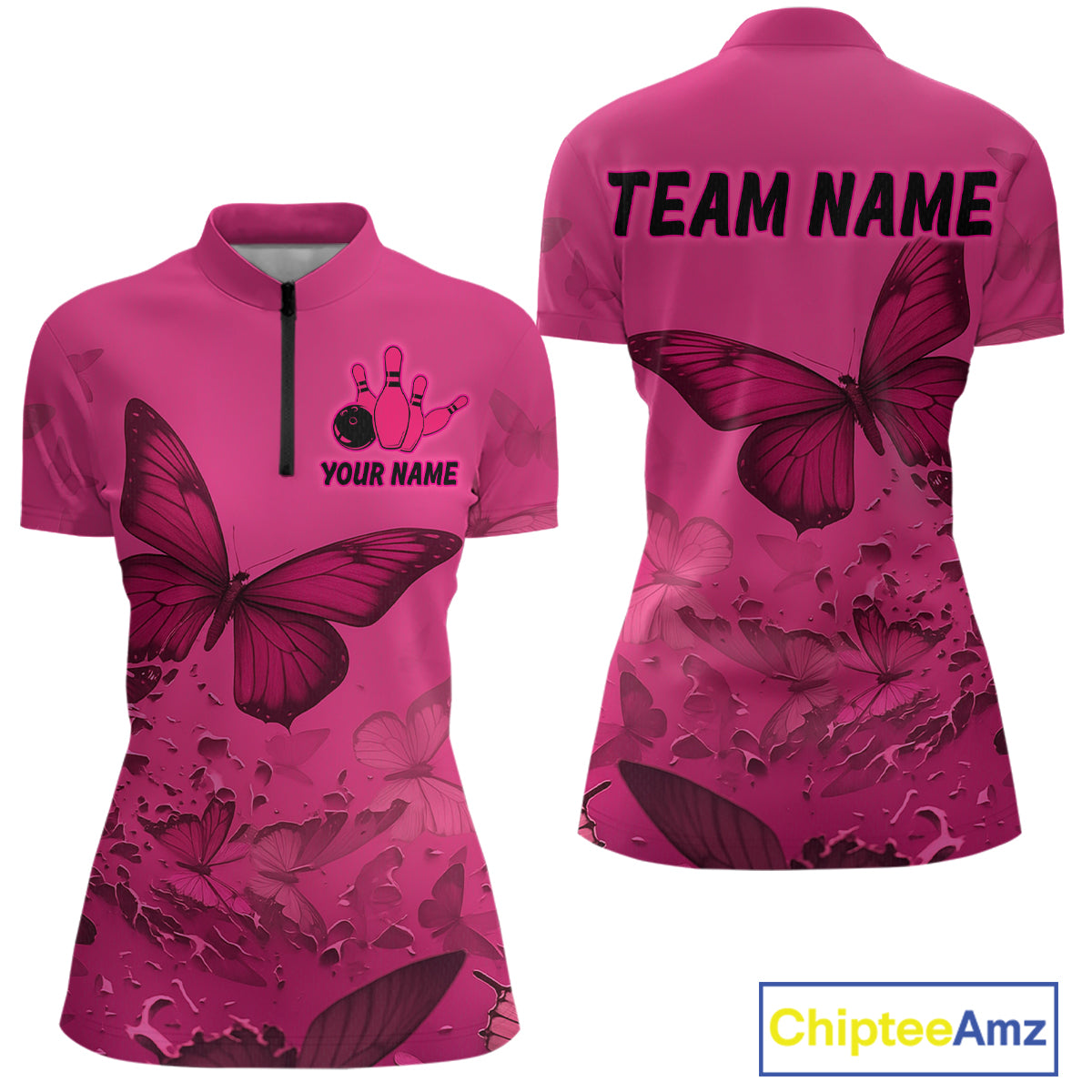 Pink Butterflies Bowling Shirts for Women Men Team Custom Bowling Polo and 1/4 Zip MBL121