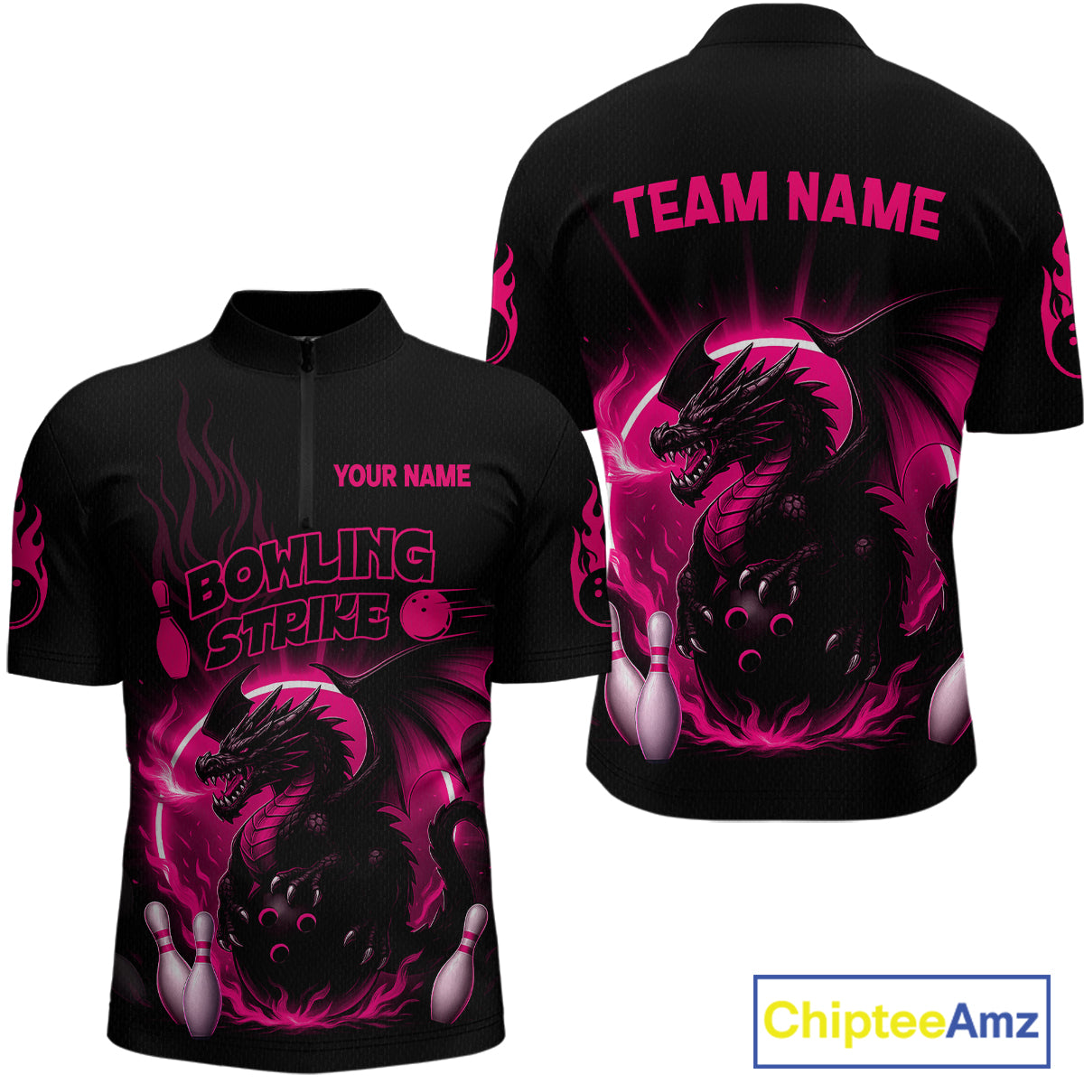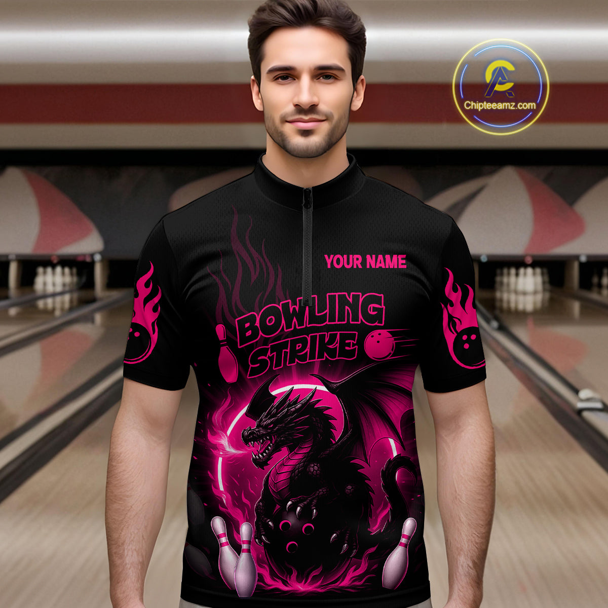 Pink Flame Dragon Bowling Shirt Custom Strike Bowling Team Jersey for Men Uniform QZT726