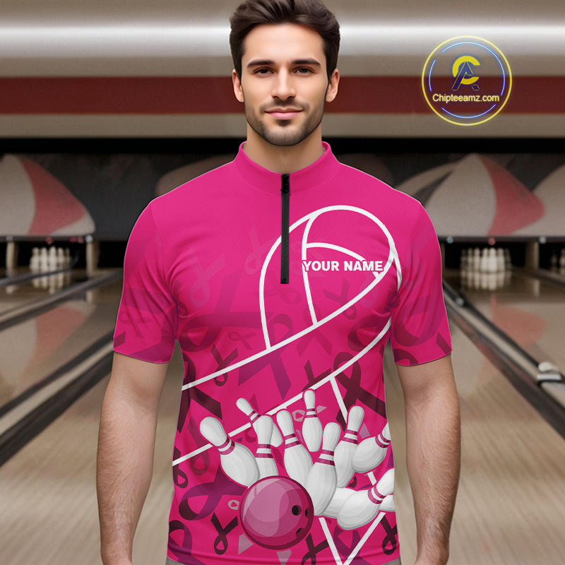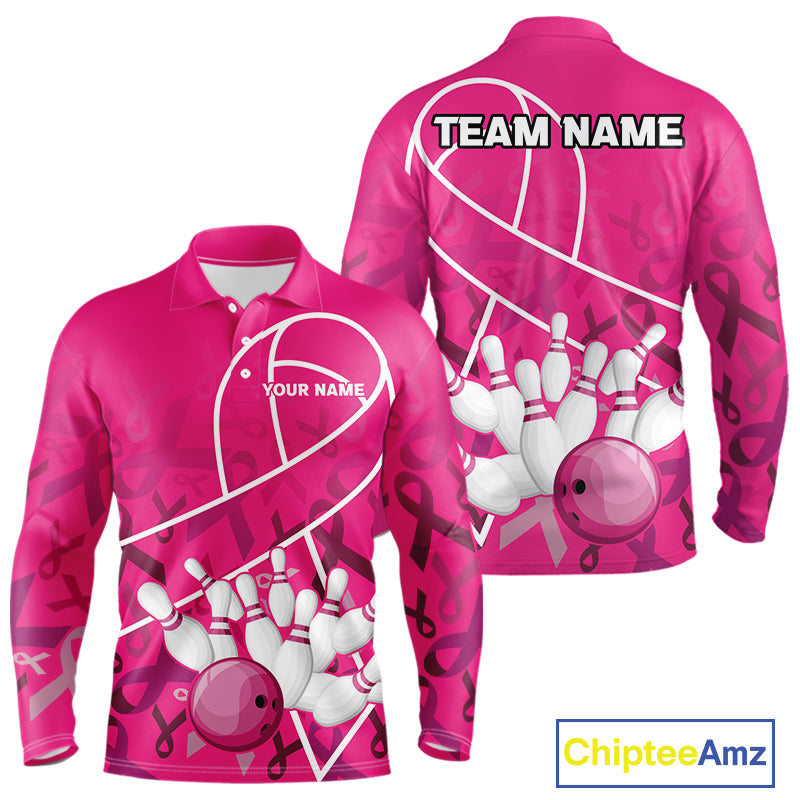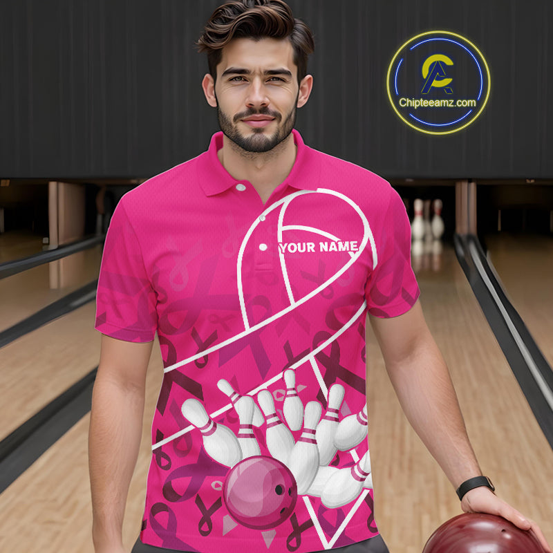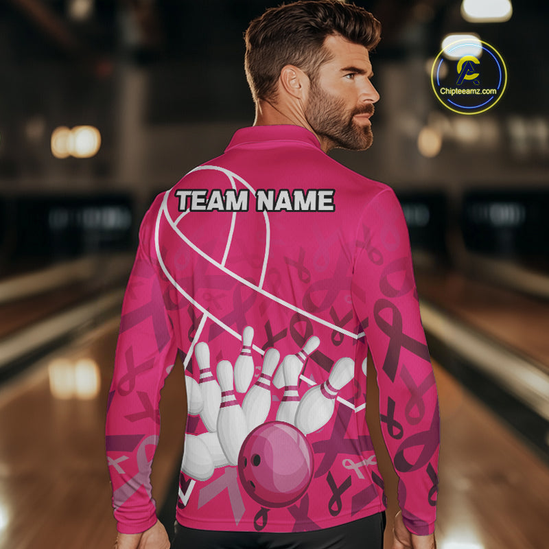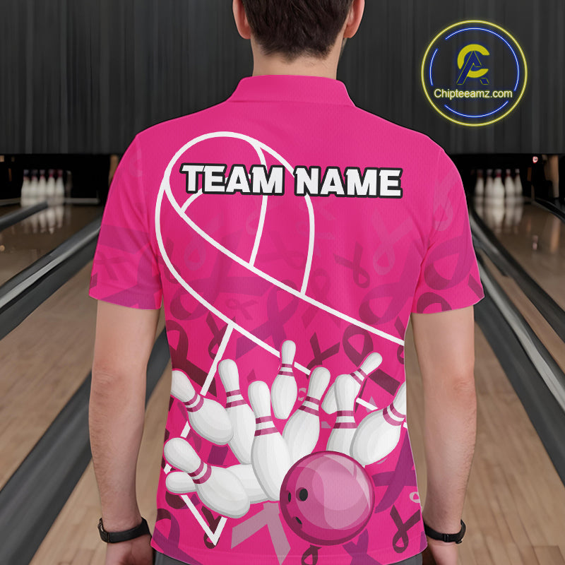 Pink ribbon pattern breast cancer awareness Bowling Shirts For Men Custom team bowling jerseys NQS10190