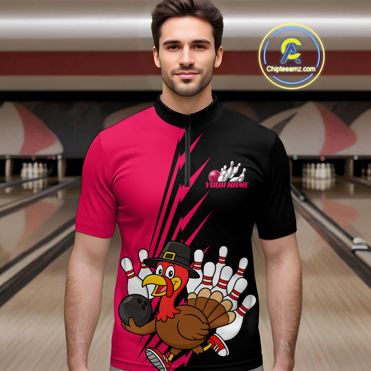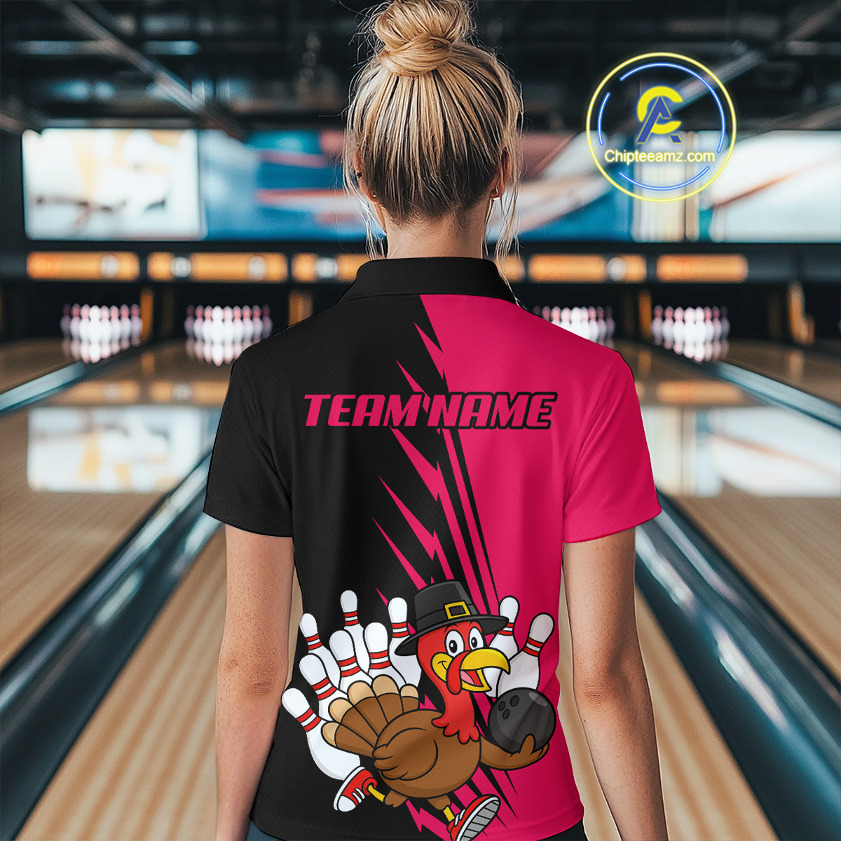 Pink Turkey Bowling Shirts for Women Men Team Custom Bowling Jerseys Thanksgiving MBL180