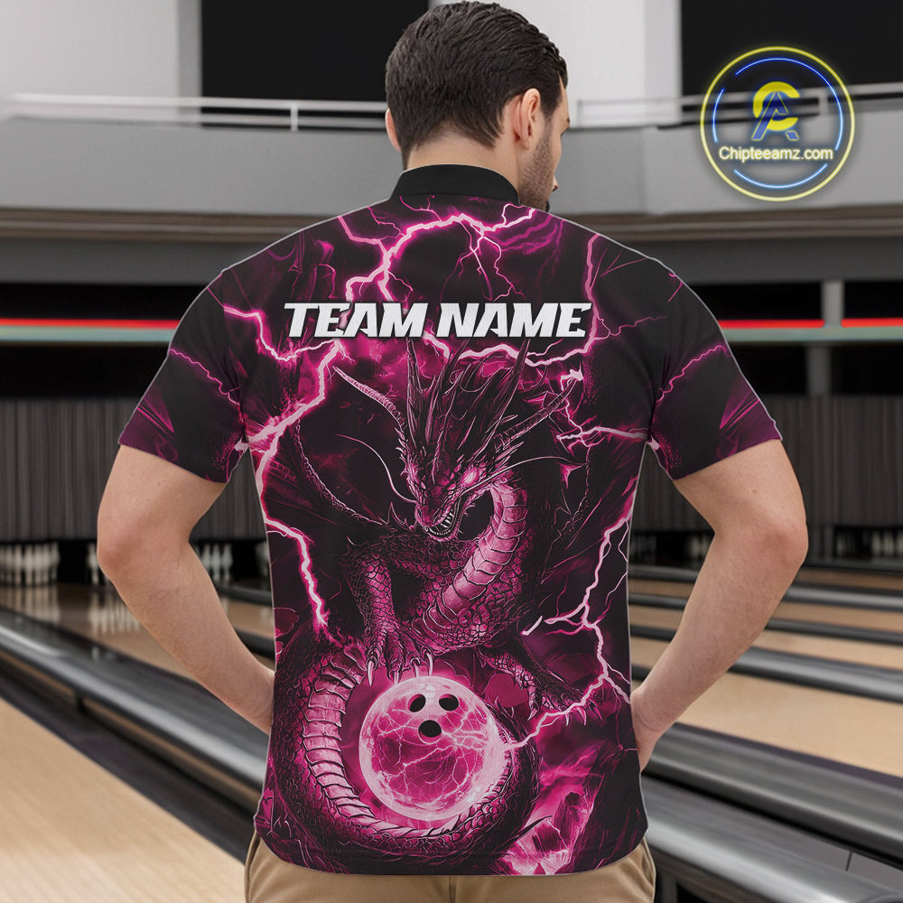 Custom Pink Thunder Lightning Dragon Bowling Quarter-Zip Shirts For Men, Team Uniform IPHW9760