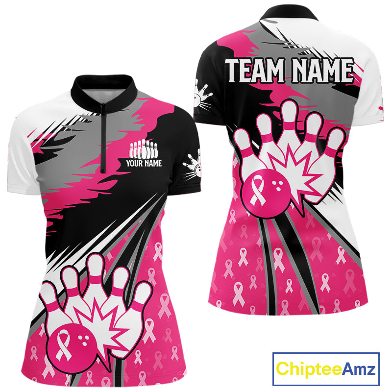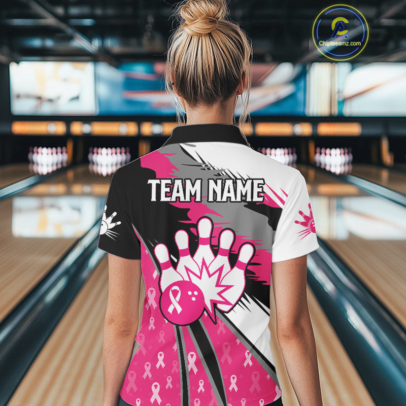 Women bowling shirts Custom pink ribbons pattern Bowling Team Jersey, Breast cancer shirt for Bowler NQS10515
