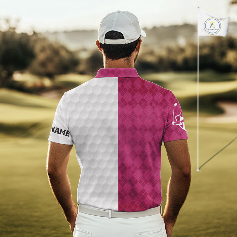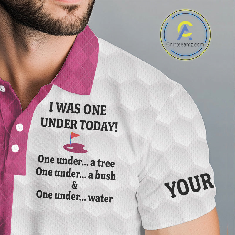 Pink argyle white Men golf polo shirt custom I was one under today one under a tree, a bush and water NQS10091