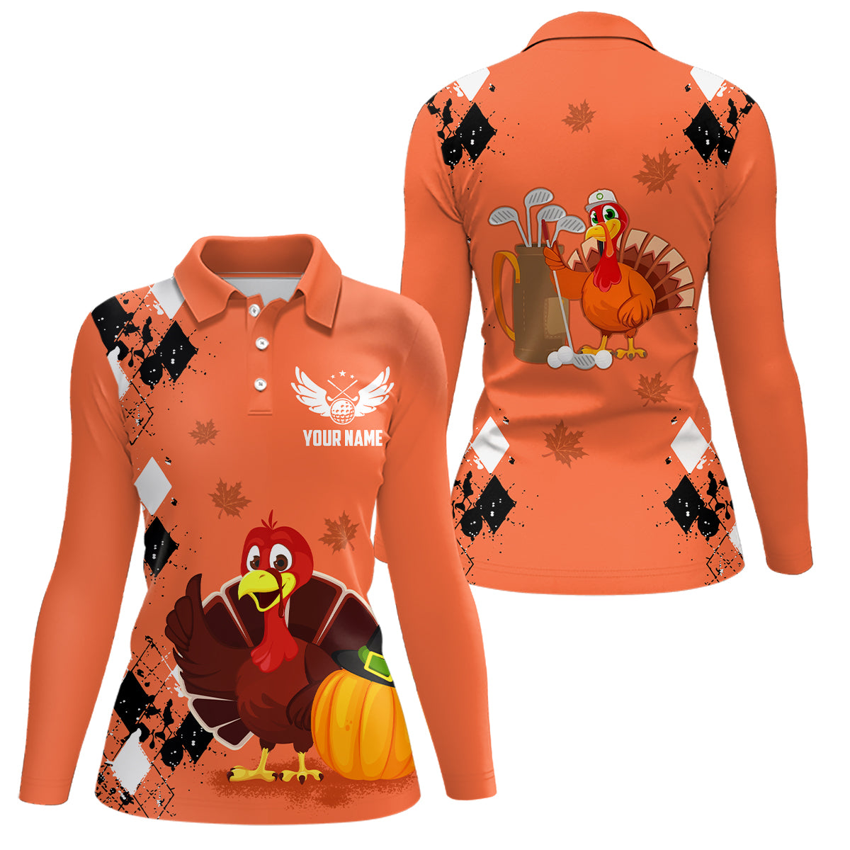 Turkey Bird Thanksgiving Golf Polo Shirt Argyle Orange Custom Women Golf Tops Cool Golf Gifts LDT0871