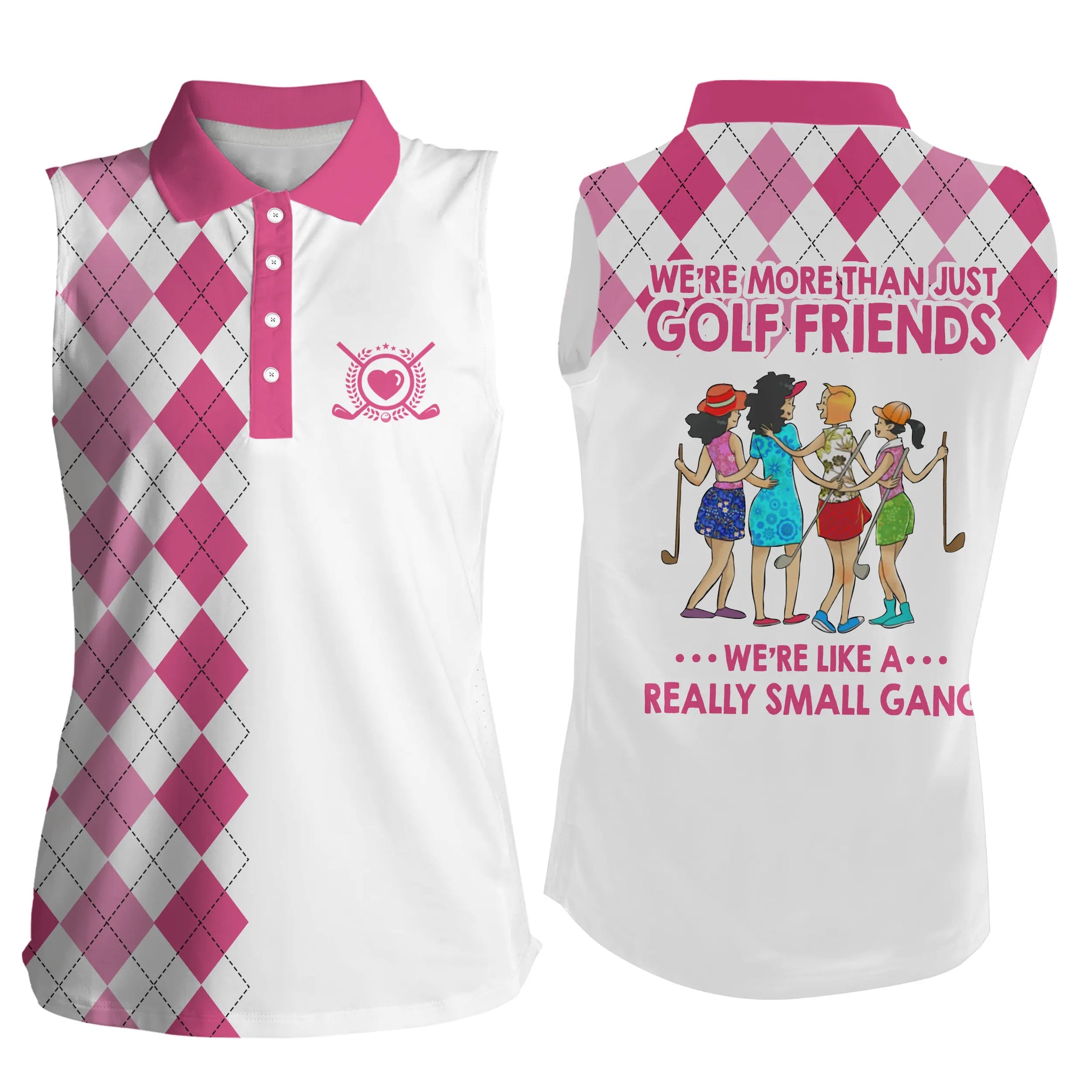 Womens sleeveless polo shirts multi-color argyle plaid we're more than golf friends we're small gang NQS4904