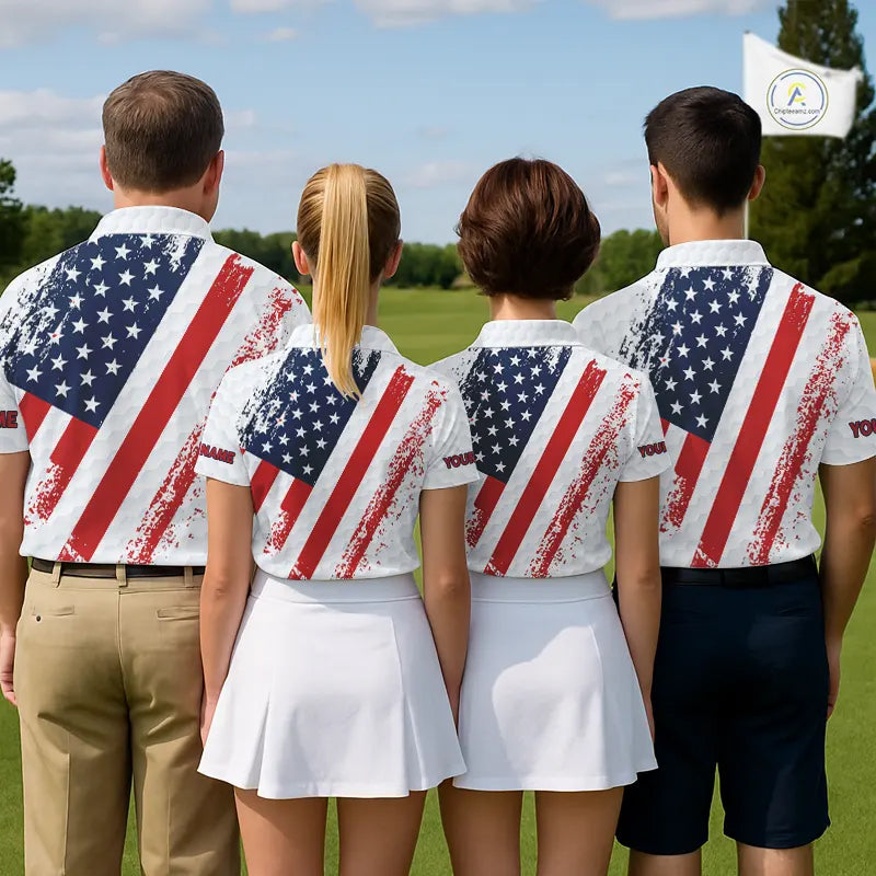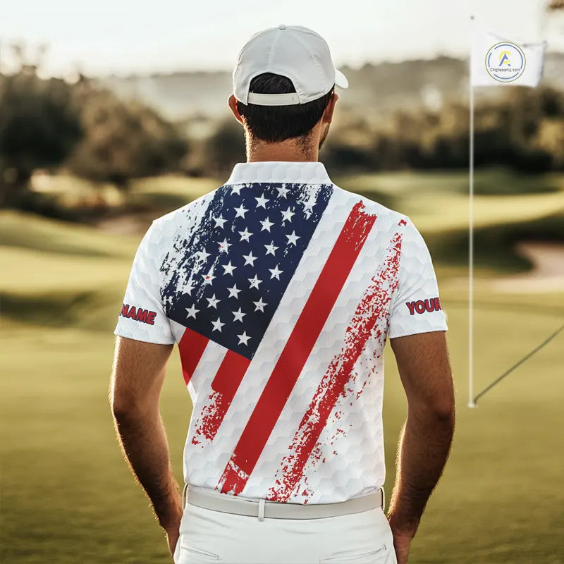 Red, white & blue American Flag Mens Golf polo shirts Custom patriotic golf outfit for men NQS11291