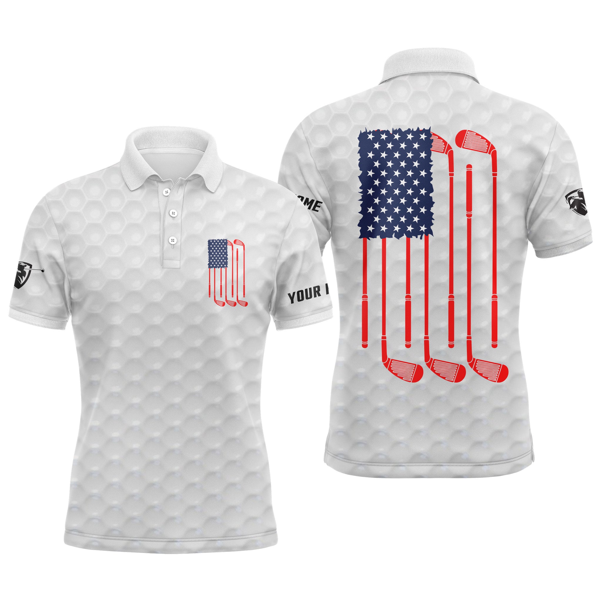 American flag white mens golf polo shirt personalized patriotic golf gift ideas for him NQS3420