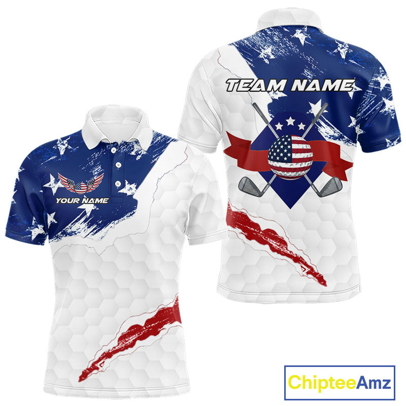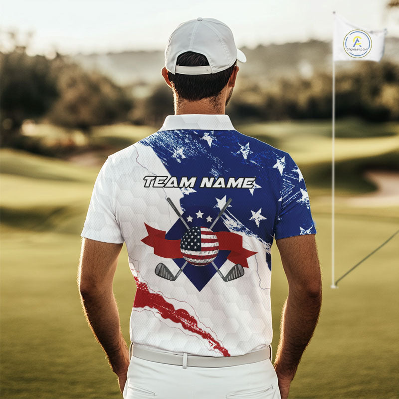 American Flag Mens Golf Polo Shirts Custom Patriotic Team Golf Shirts For Men Golf Gifts NHN0008