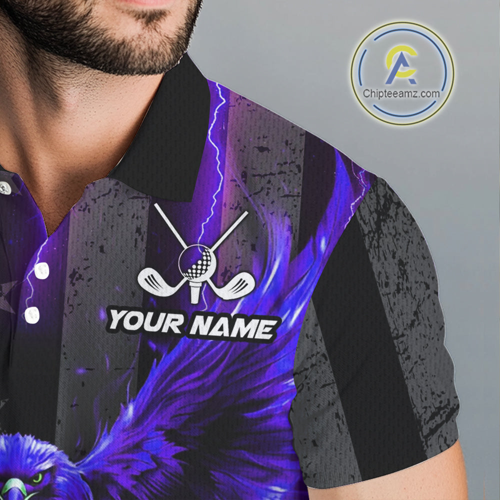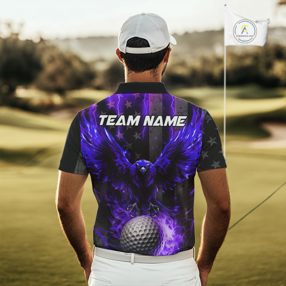 Black American flag Men golf polo shirt Custom purple lightning thunder Eagle patriotic team Golf top NQS11094