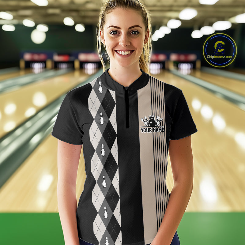 Retro Black argyle pattern Bowling shirts For Women custom bowling team jerseys Bowler Outfits NQS10276