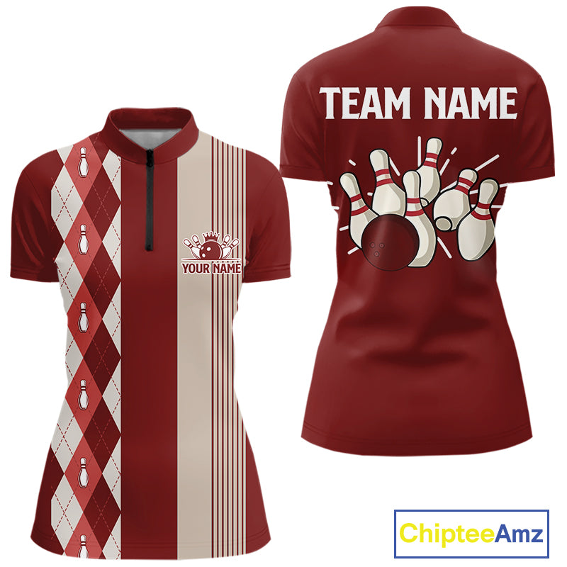 Retro Red argyle pattern Bowling shirts For Women custom bowling team jerseys Bowler Outfits NQS10151