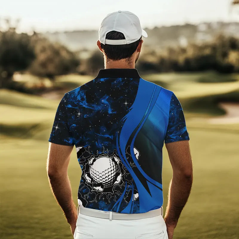 Black and Blue Galaxy Mens golf polo shirt custom cool golf shirts, personalized golf gifts NQS9694