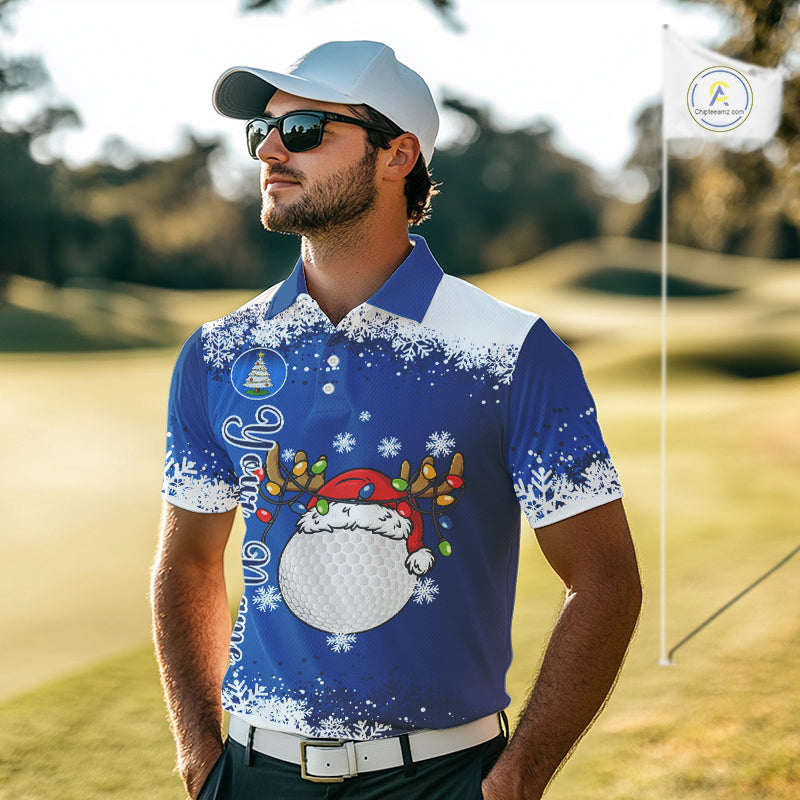 Blue and White Christmas Golf Polo shirts For men Custom mens golf tops, Xmas golf gifts for men NQS11027