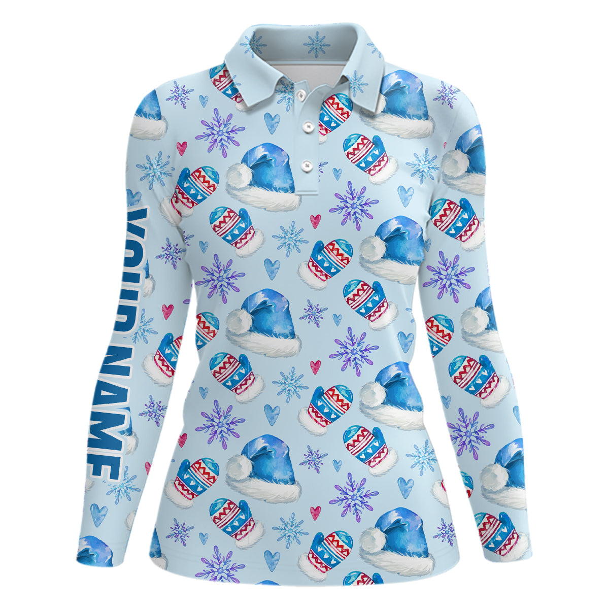 Watercolor Blue Christmas Golf Polo Shirt Personalized Funny Golf Shirts For Women Golf Gifts LDT0925