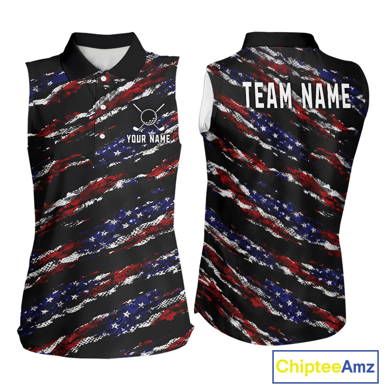 Black American Flag pattern Sleeveless Golf Polo shirts for Women custom ladies patriotic golf shirts NQS11553