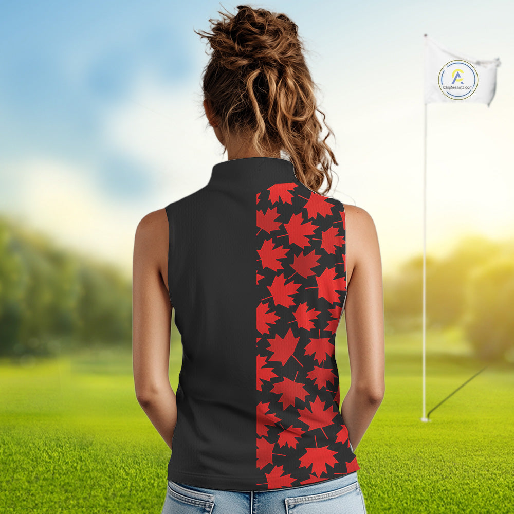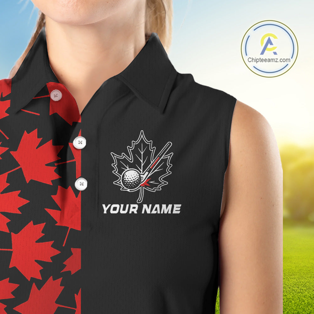 Black and Red maple leaf pattern Women sleeveless polo shirt Custom Canadian Flag patriotic golf top NQS10139