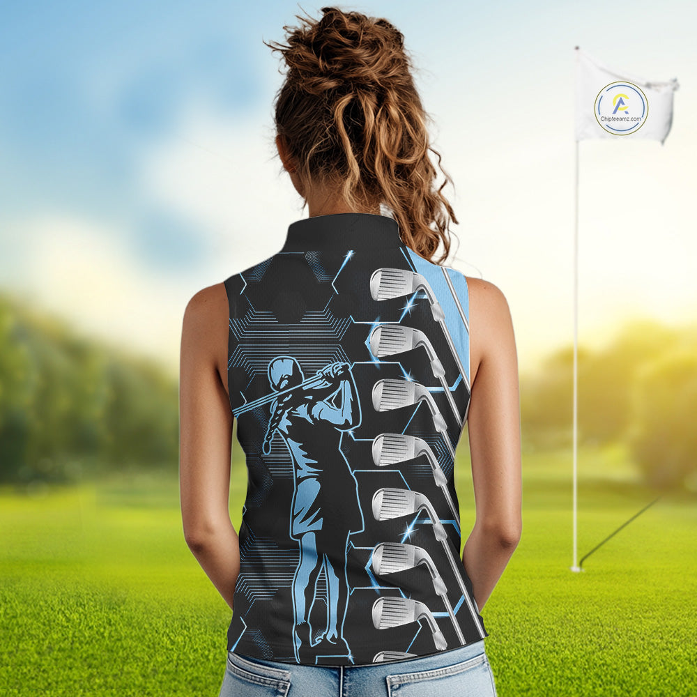 Blue and Black golf clubs Women sleeveless polos custom golf outfit ladies, personalized golf gifts NQS10212