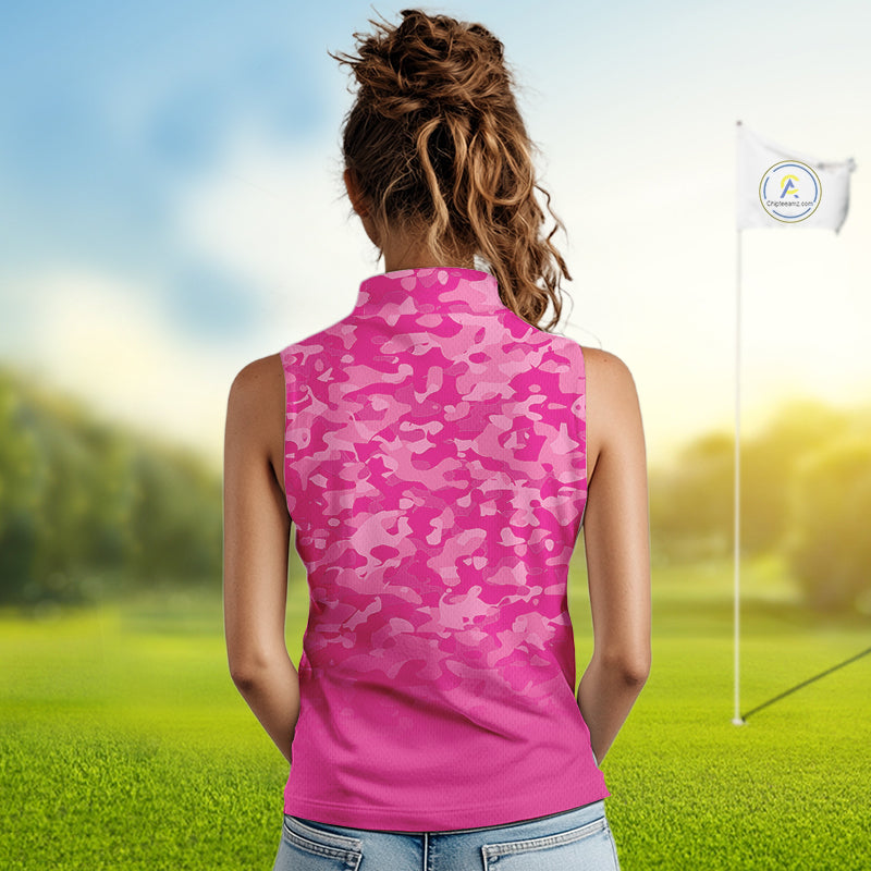 Breast Cancer Awareness golf shirts custom Women sleeveless golf polos, pink camo ribbon golf shirts NQS10191