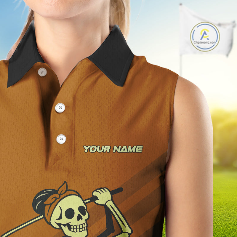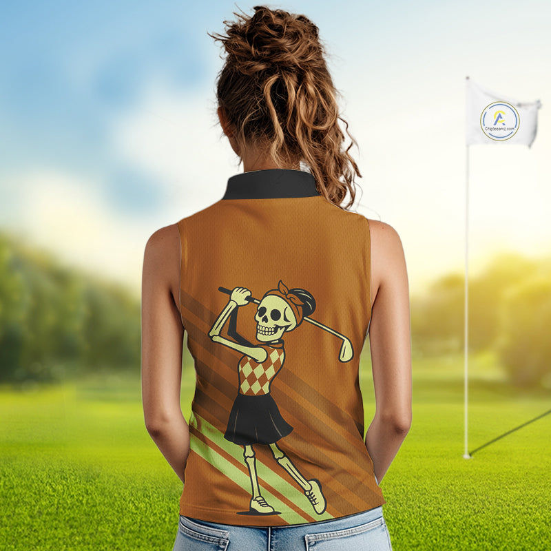 Funny argyle pattern Skull Sleeveless Polo Shirt Custom ladies golf attire, cool golf gift | Orange NQS10656