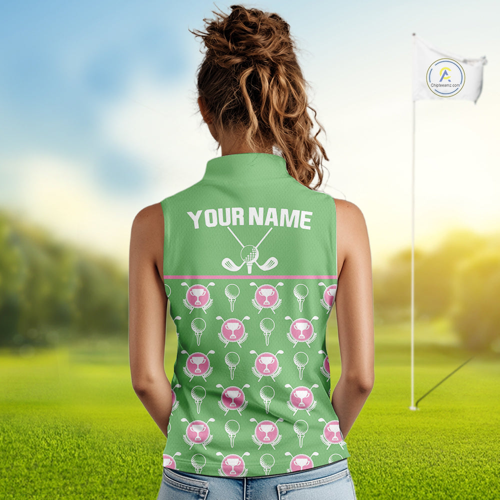 Green and Pink Golf pattern Sleeveless polo golf shirt Custom ladies's golf clothes, best golf gifts NQS11105