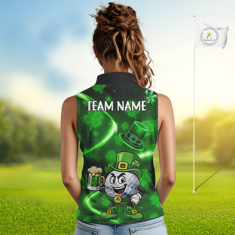 Green shamrock pattern Funny Sleeveless polo shirt Custom St Patrick's Day Lucky ladies golf outfit NQS11134