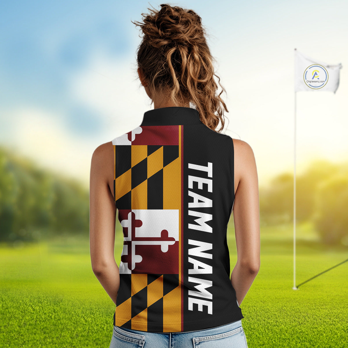 Maryland Flag black Women sleeveless polo shirt Custom Patriotic Ladies Golf attire For team NQS10188
