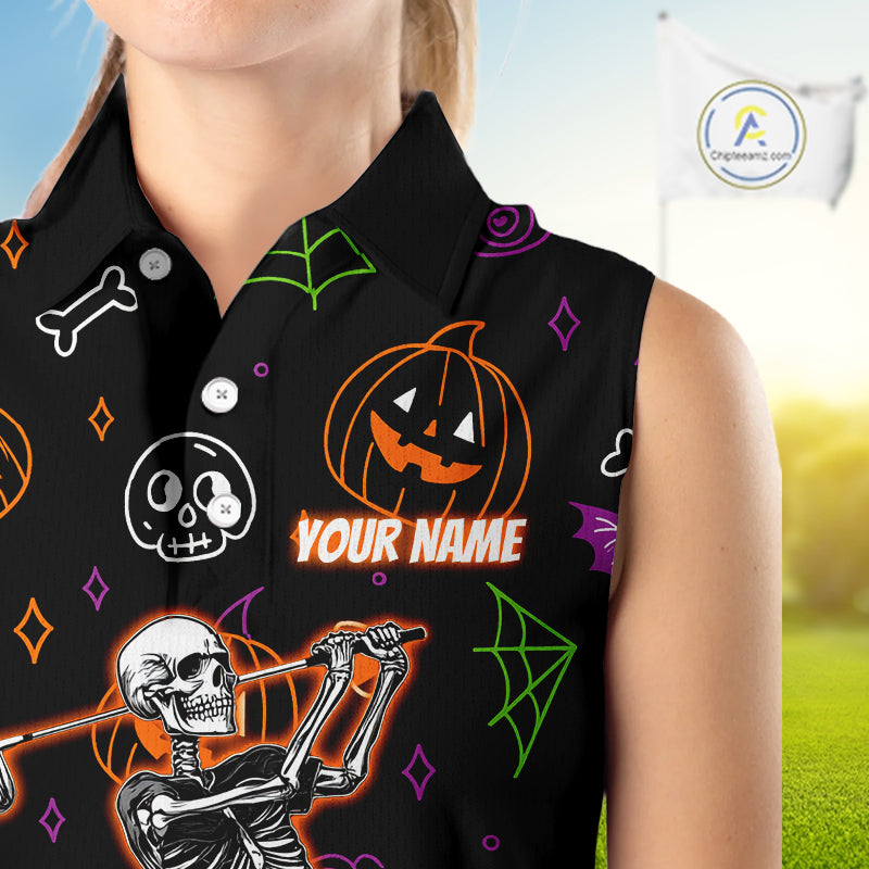 Personalized Funny Halloween Pattern Skull Sleeveless Golf Polo Shirts, Halloween Ladies Golf Gifts NQS10836