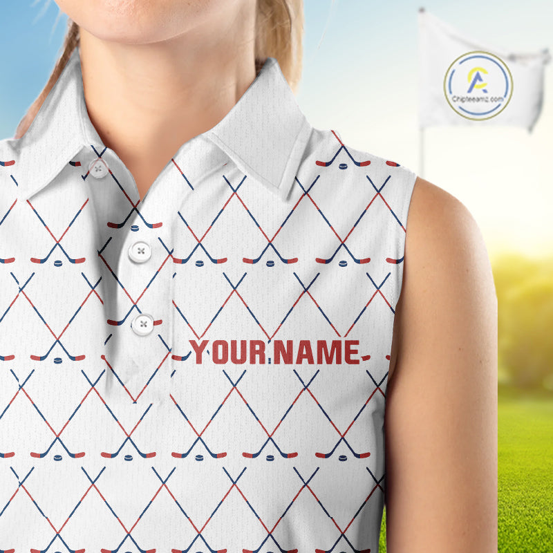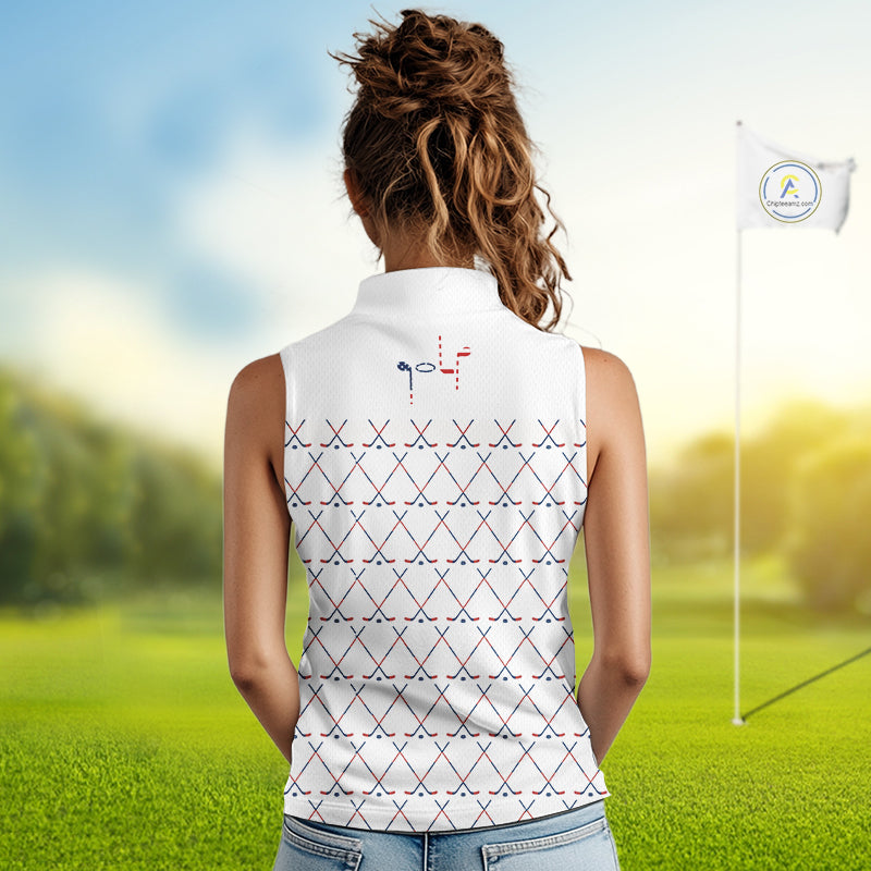 Red, White & Blue golf clubs pattern Women sleeveless polo shirt Custom Patriotic ladies golf outfit NQS10198