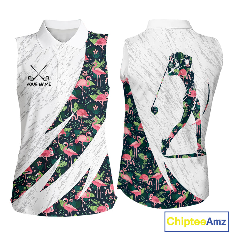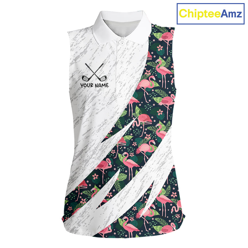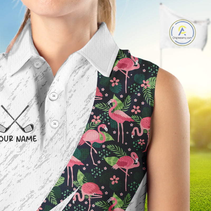Flamingo Womens Sleeveless Golf Polo Shirts, Colorful Tropical Flamingo Pattern, Tropical Golf Shirt NHT590