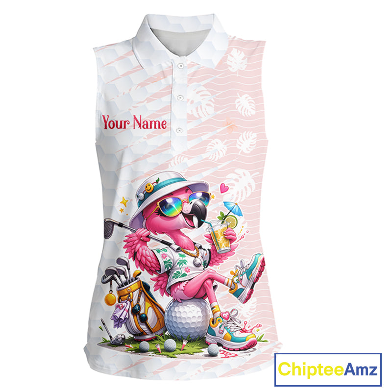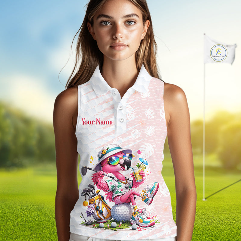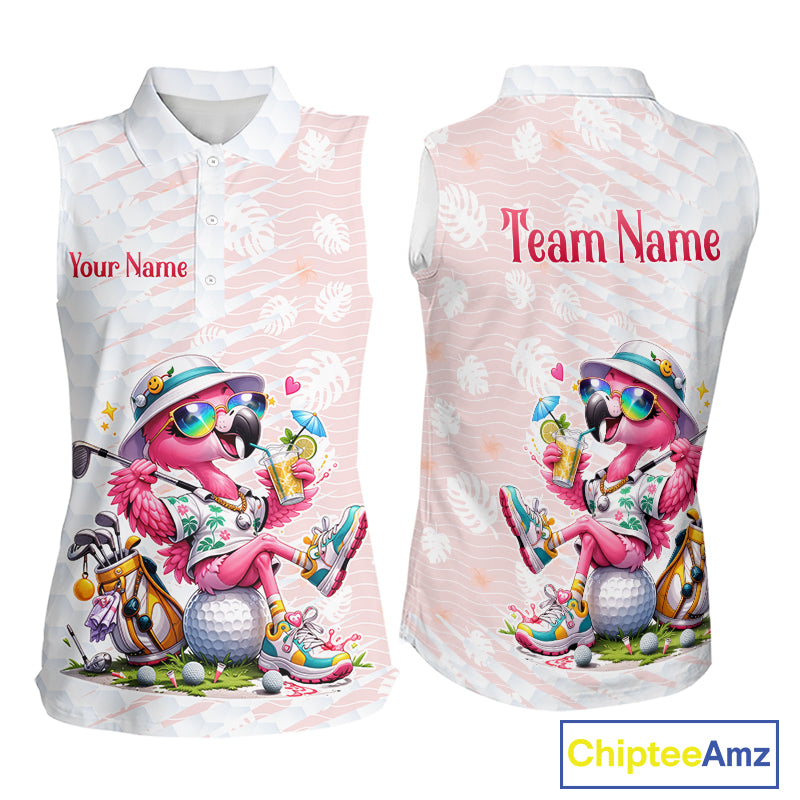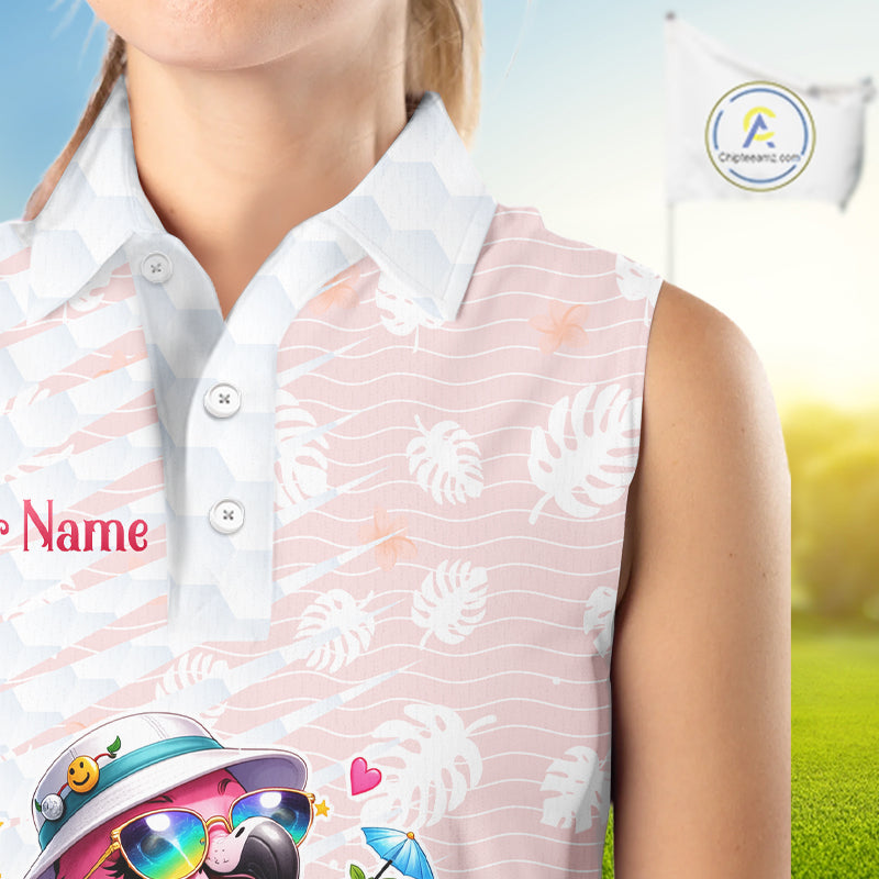 Funny Flamingo Womens Sleeveless Golf Shirt With Pattern Pink Tropical – Personalized Name & Team Custom Polo NHT597