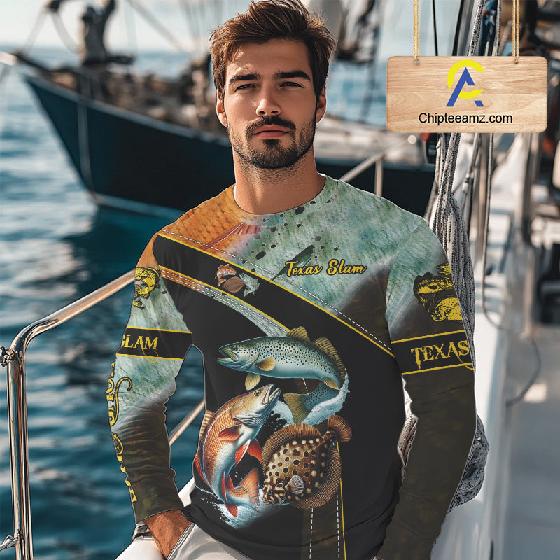 Redfish, Trout, Flounder fishing scales Custom long sleeve fishing shirts, TX Slam fishing jerseys NQS10217