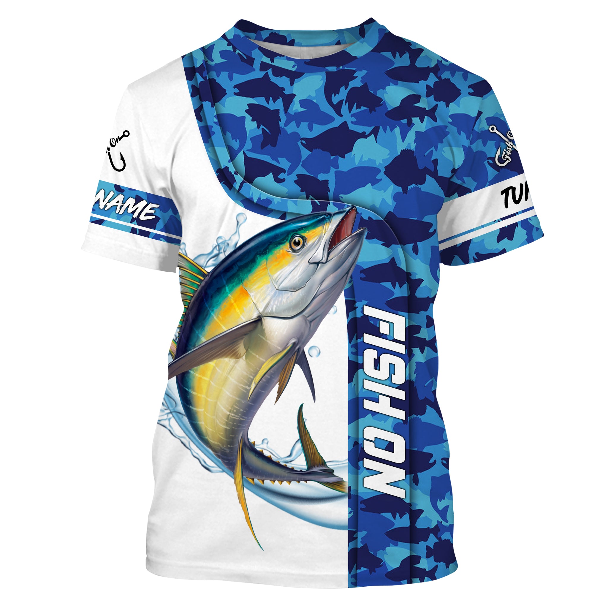 Tuna fishing blue sea camo saltwater Custom Name performance long sleeve fishing shirt uv protection NQS3706