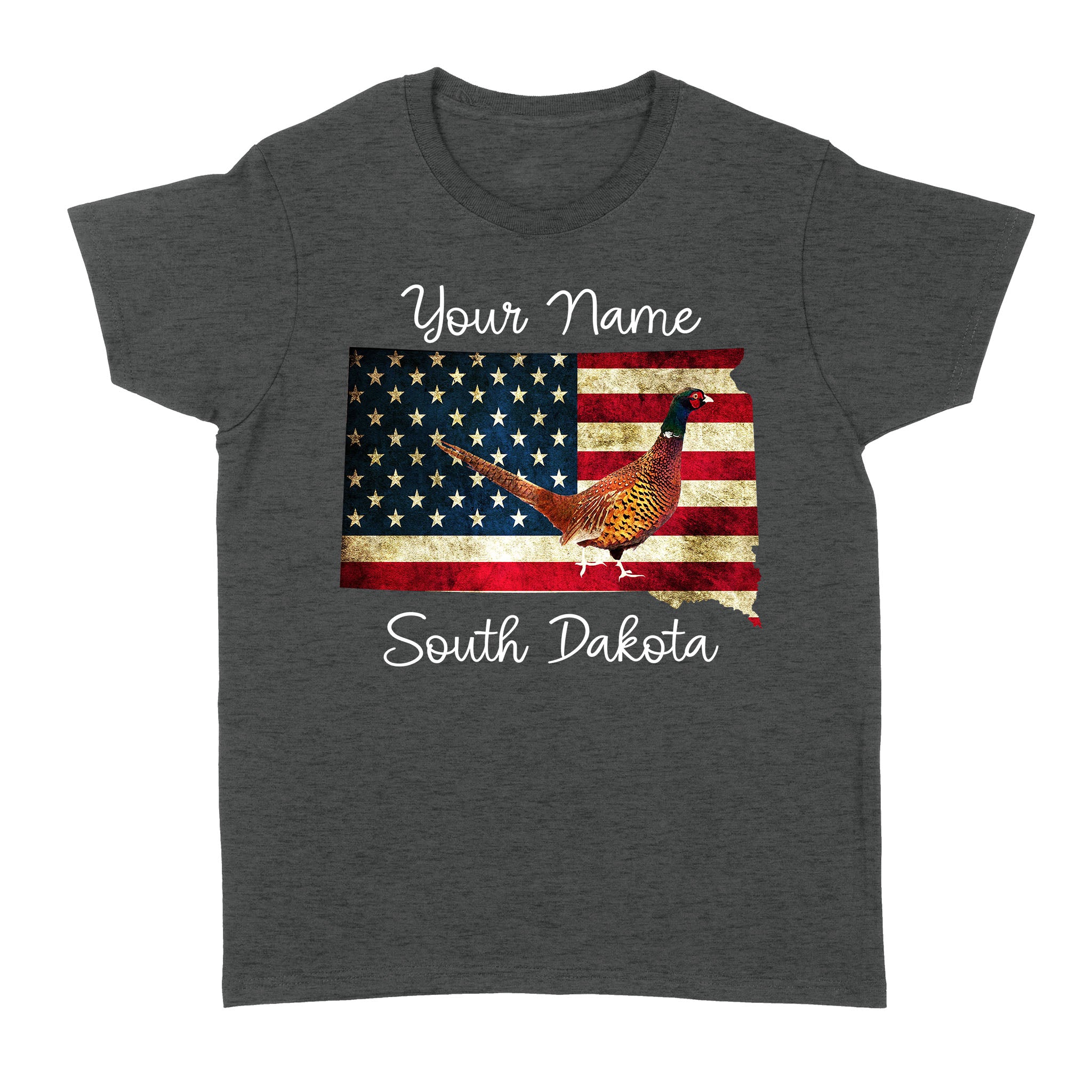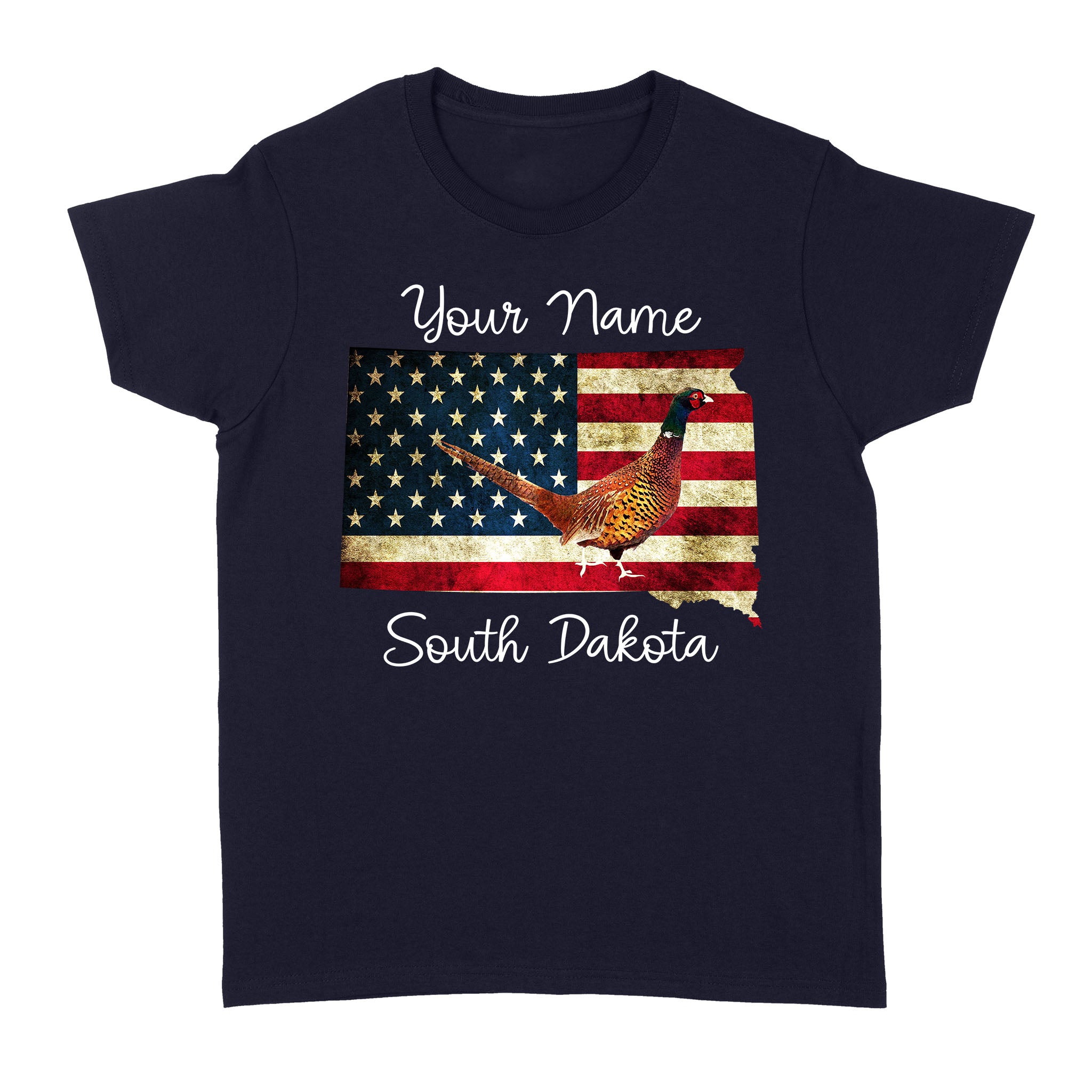 Pheasant hunting shirt South Dakota American Flag bird hunter custom name T-shirt - FSD1162 D06