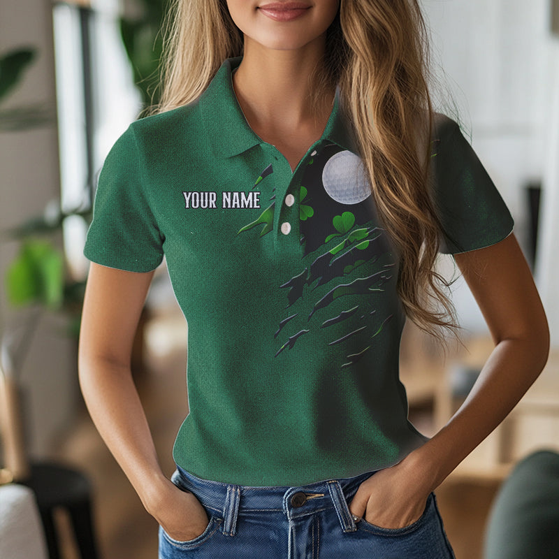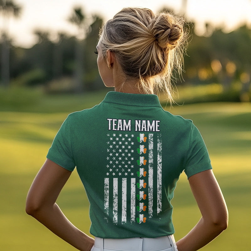 American Flag St Patrick Day Custom Women golf polo shirts, personalized golf jerseys for team | Green NQS9588
