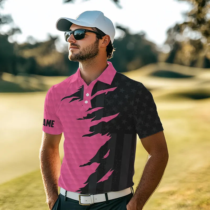 Personalized Mens golf polos shirts custom pink golf ball skin black American flag mens golf apparel NQS9775