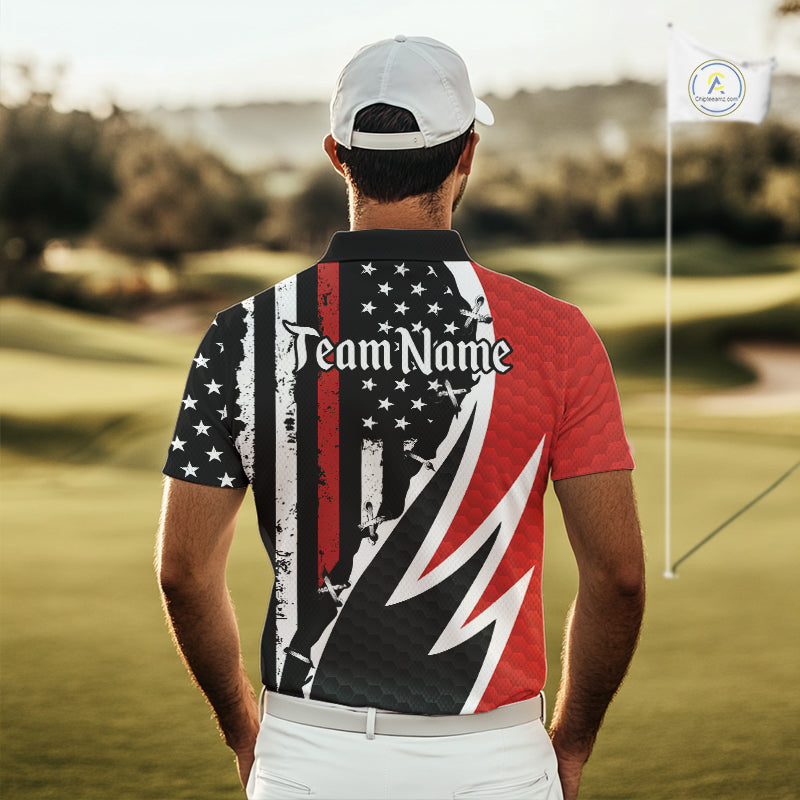 Red, White and Black American Flag Mens Golf polo shirts Custom Patriotic Team Golf attire for men NQS10430
