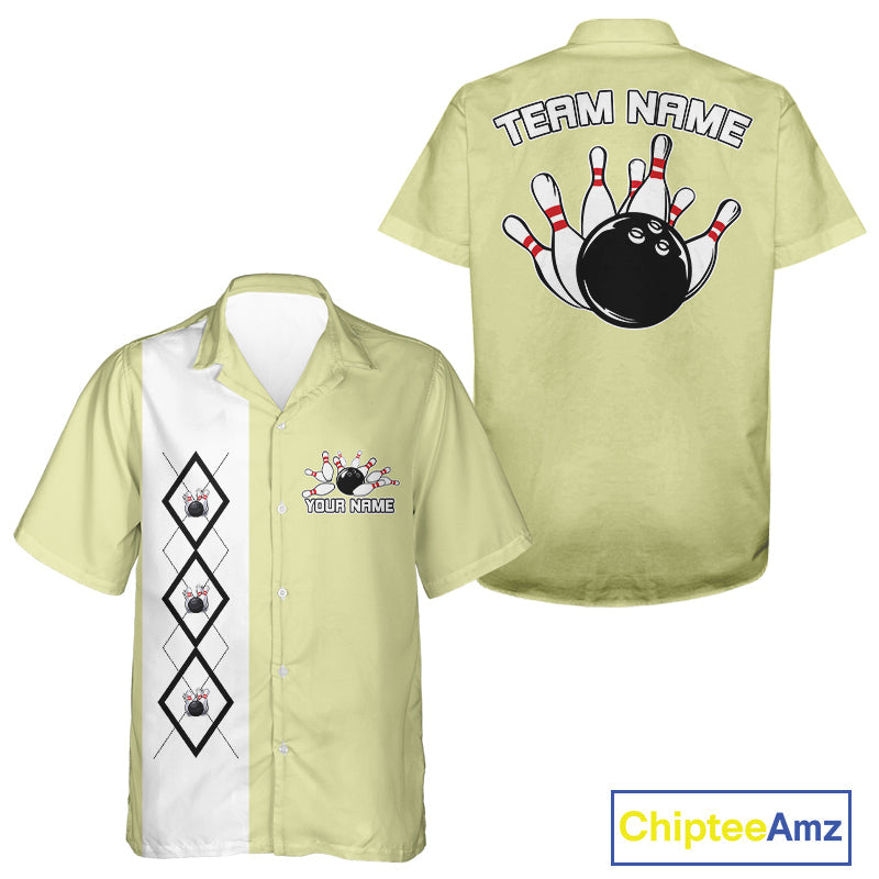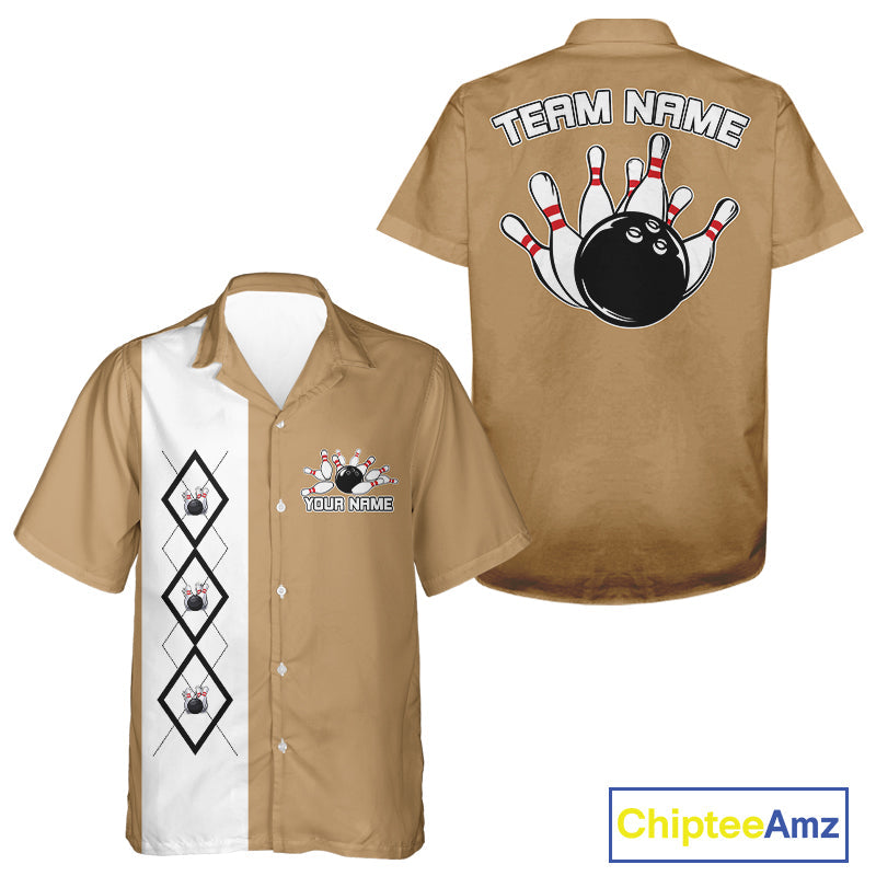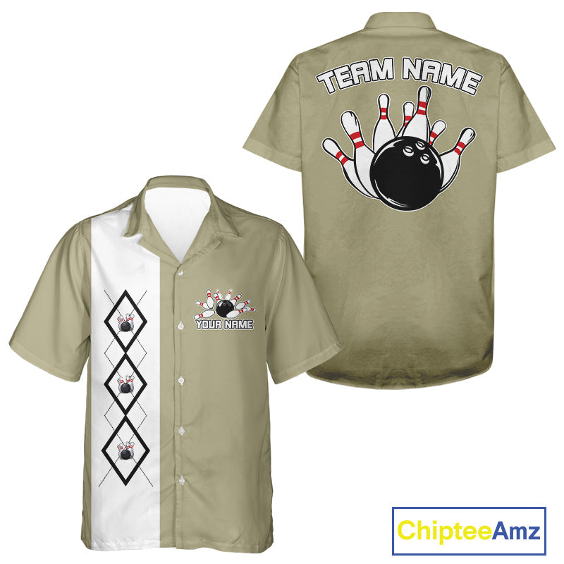 Custom Classic Vintage Argyle Bowling Men And Women Button Up, Retro Bowling Team Shirt IPHW10068