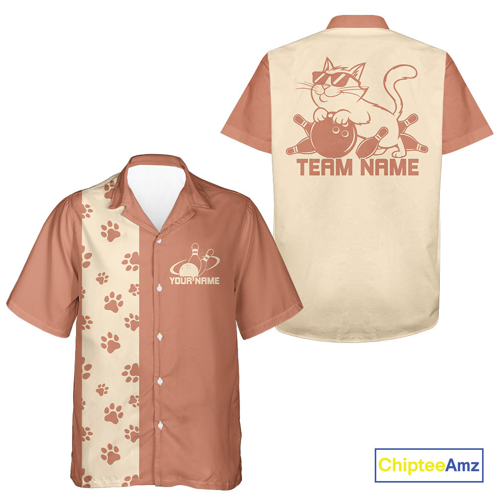 Custom Retro 50S Cat Bowling Button Up Shirt Men And Women, Vintage Cat Bowling Shirt IPHW10097