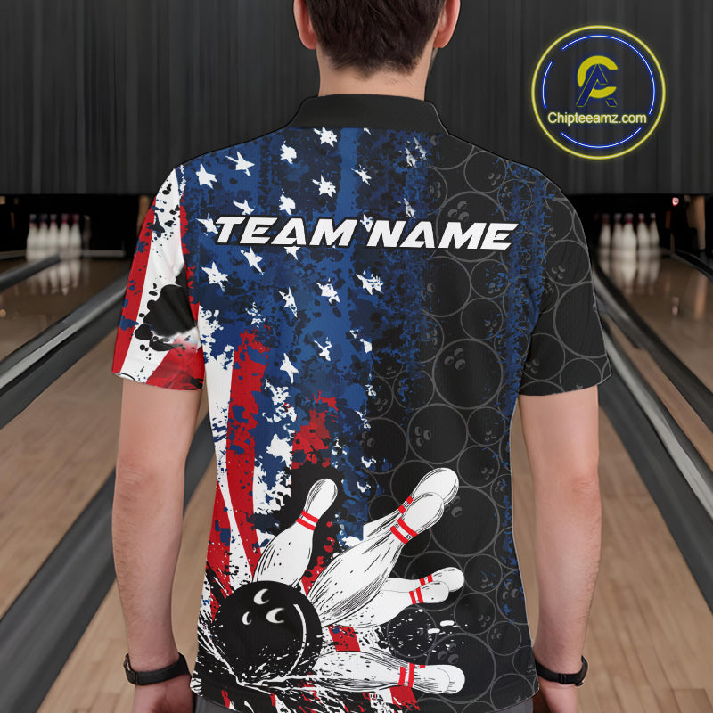 Custom Grunge Vintage American Flag Patriotic Bowling Team Jerseys, Bowling Men Polo Shirt IPHW9489