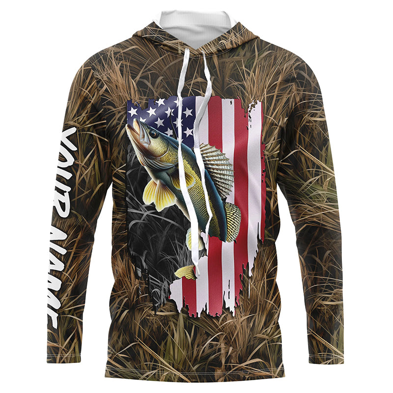 Custom American Walleye fishing camo shirts for men Performance Long Sleeve fishing shirt NQS1032