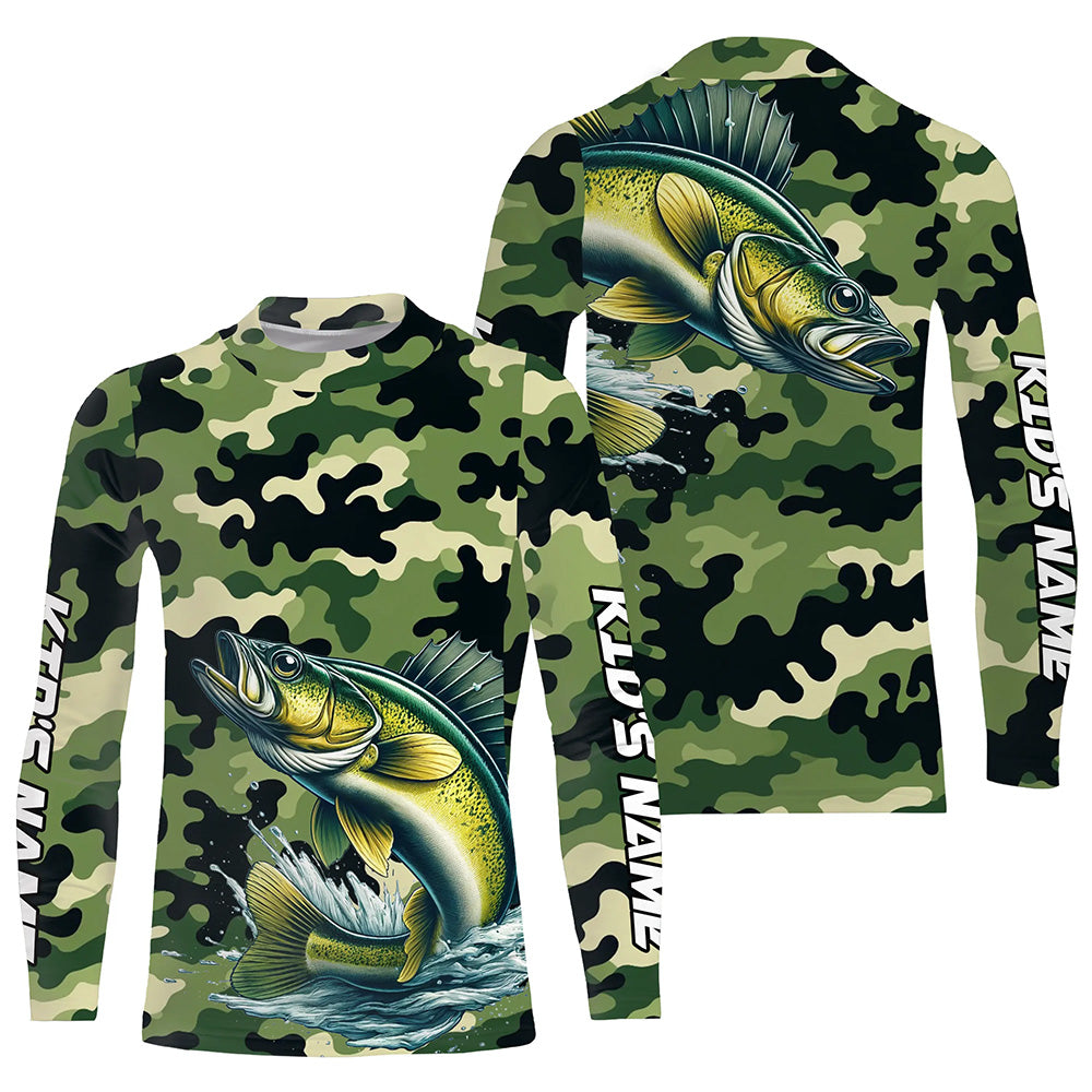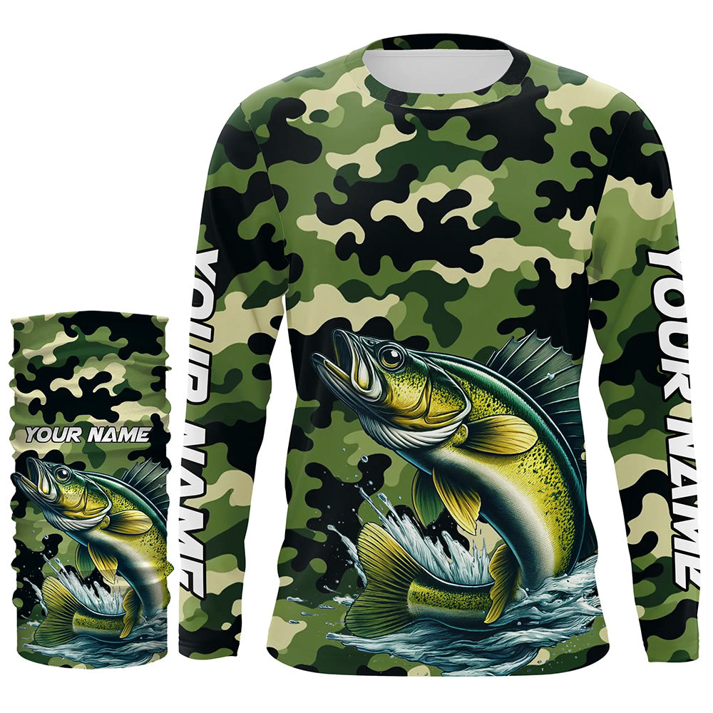 Black Green camo Walleye fishing Custom Long Sleeve Tournament Fishing Shirts, Walleye fishing Jerseys NQS7553