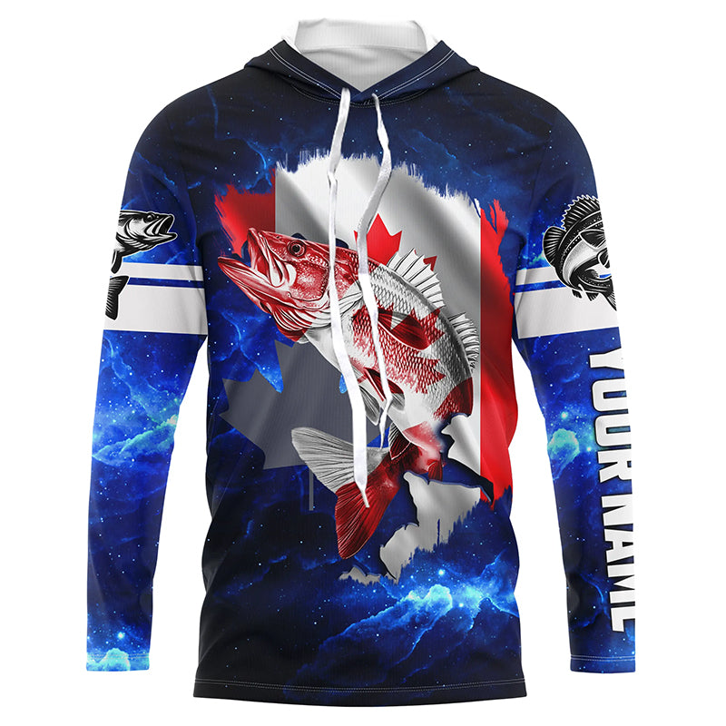 Canada Flag Walleye Fishing Custom long sleeve performance Fishing Shirts, Walleye Fishing jerseys NQS3529
