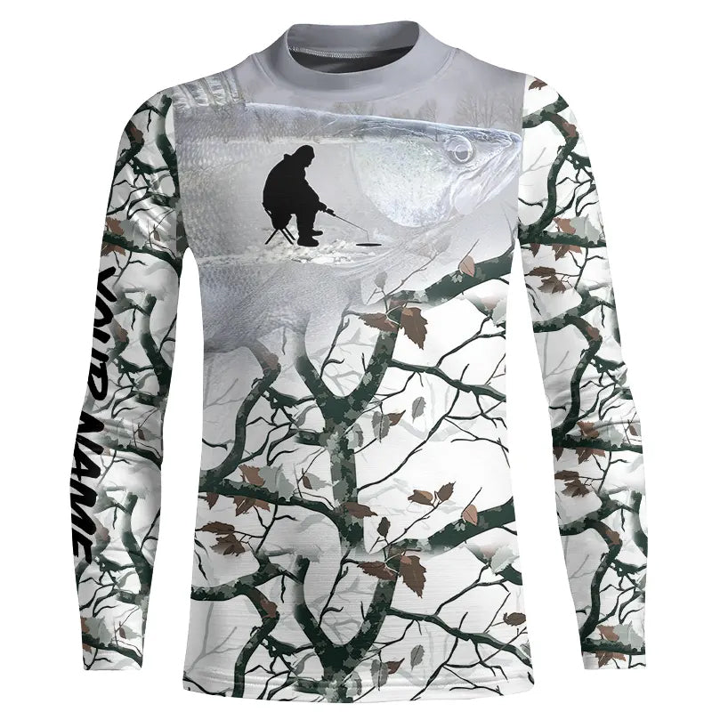 Ice fishing walleye winter camo Custom fishing shirts for men Performance Long Sleeve Fishing Apparel NQS2498