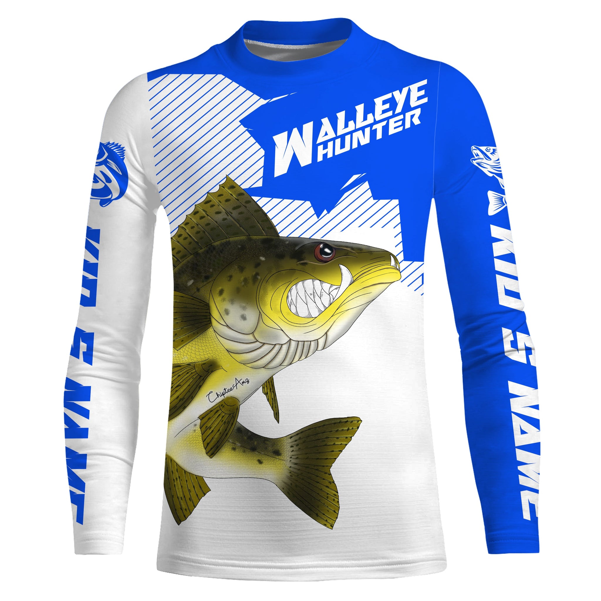 Angry Walleye Custom Long sleeve performance Fishing Shirts, Walleye hunter Fishing jerseys | blue IPHW3361