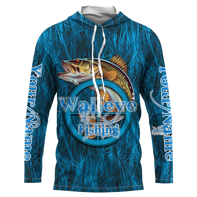 Personalized Walleye Long Sleeve Fishing Shirts, Walleye Tournament Fishing Shirts | Blue Camo IPHW5737