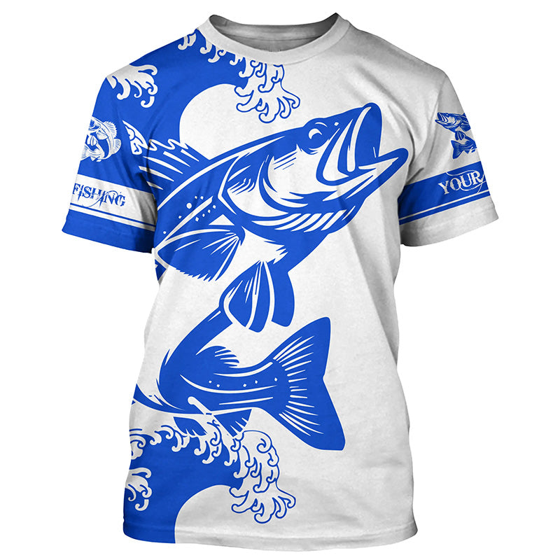 Personalized Walleye fishing tattoo jerseys, Walleye Long Sleeve Fishing tournament shirts | Blue NQS3719